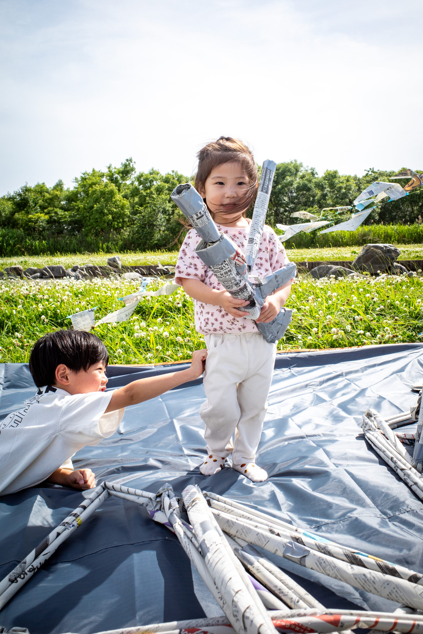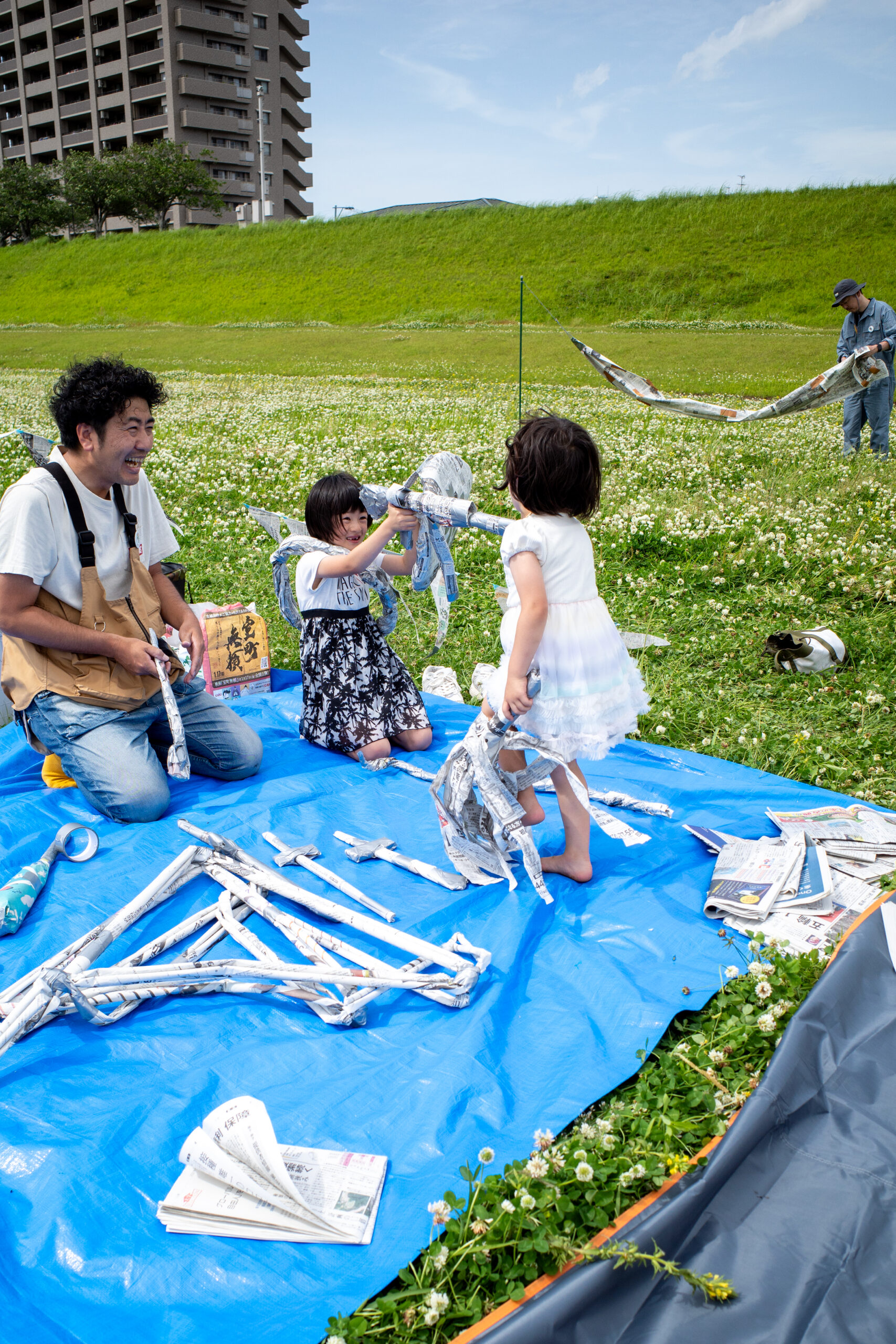 | 剣や盾を作って戦いごっこしてもOK | 新聞紙とガムテープを使って自由に制作体験ができます | 1.536334 | 4 |