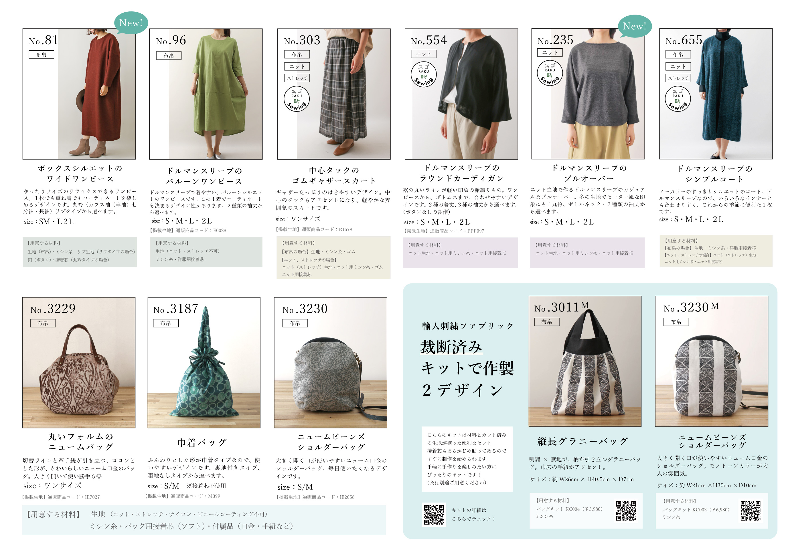 | お作りいただけます | スワニーで販売している豊富な生地や素材の中から | 1.973687 | 8 |