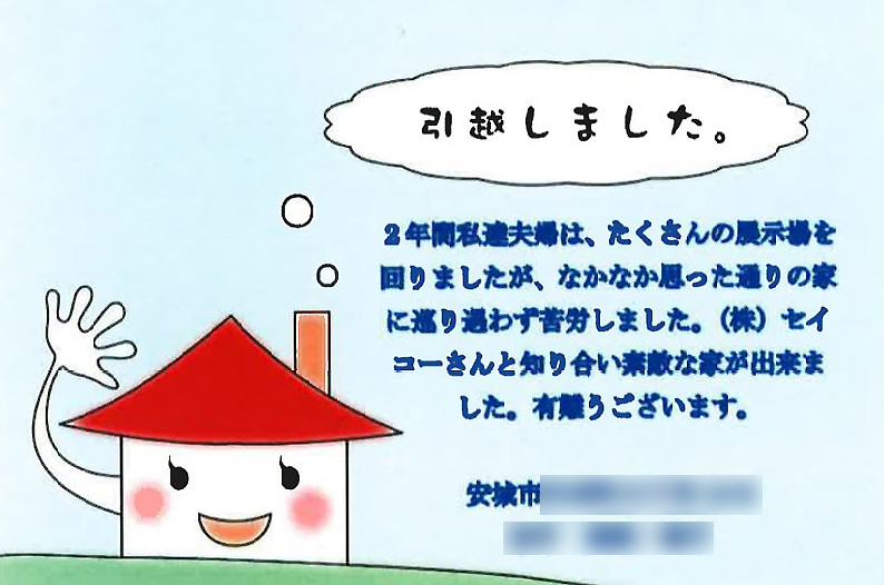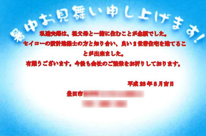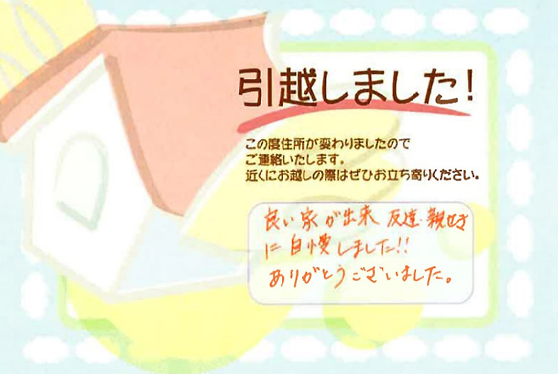 | 昨年は素敵なお家を建ててくださり | 本当にありがとうございました | 1.52553 | 4 |