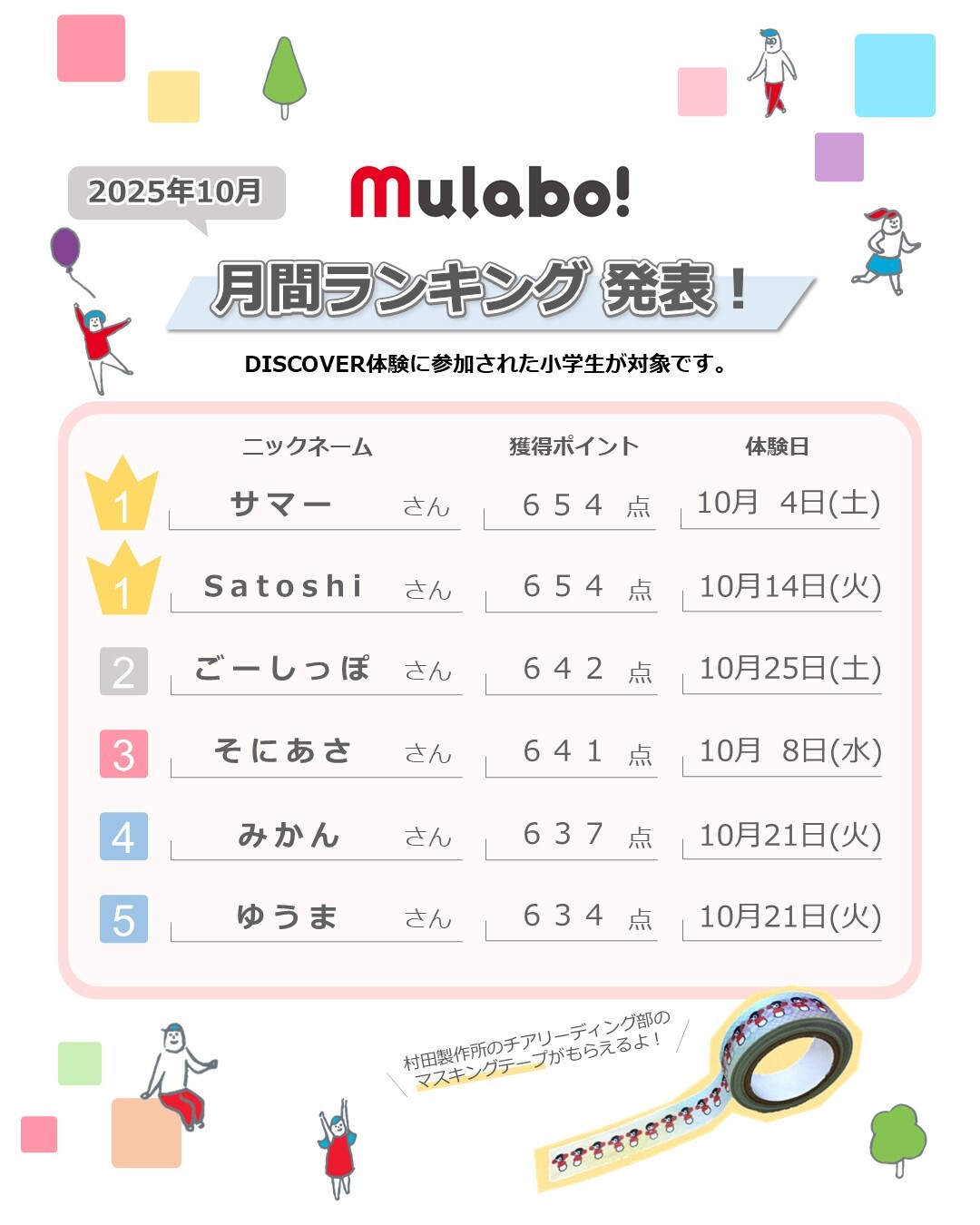 | DISCOVER体験を含め | 生徒の利用人数に引率者を含めないでください | 1.53329 | 4 |