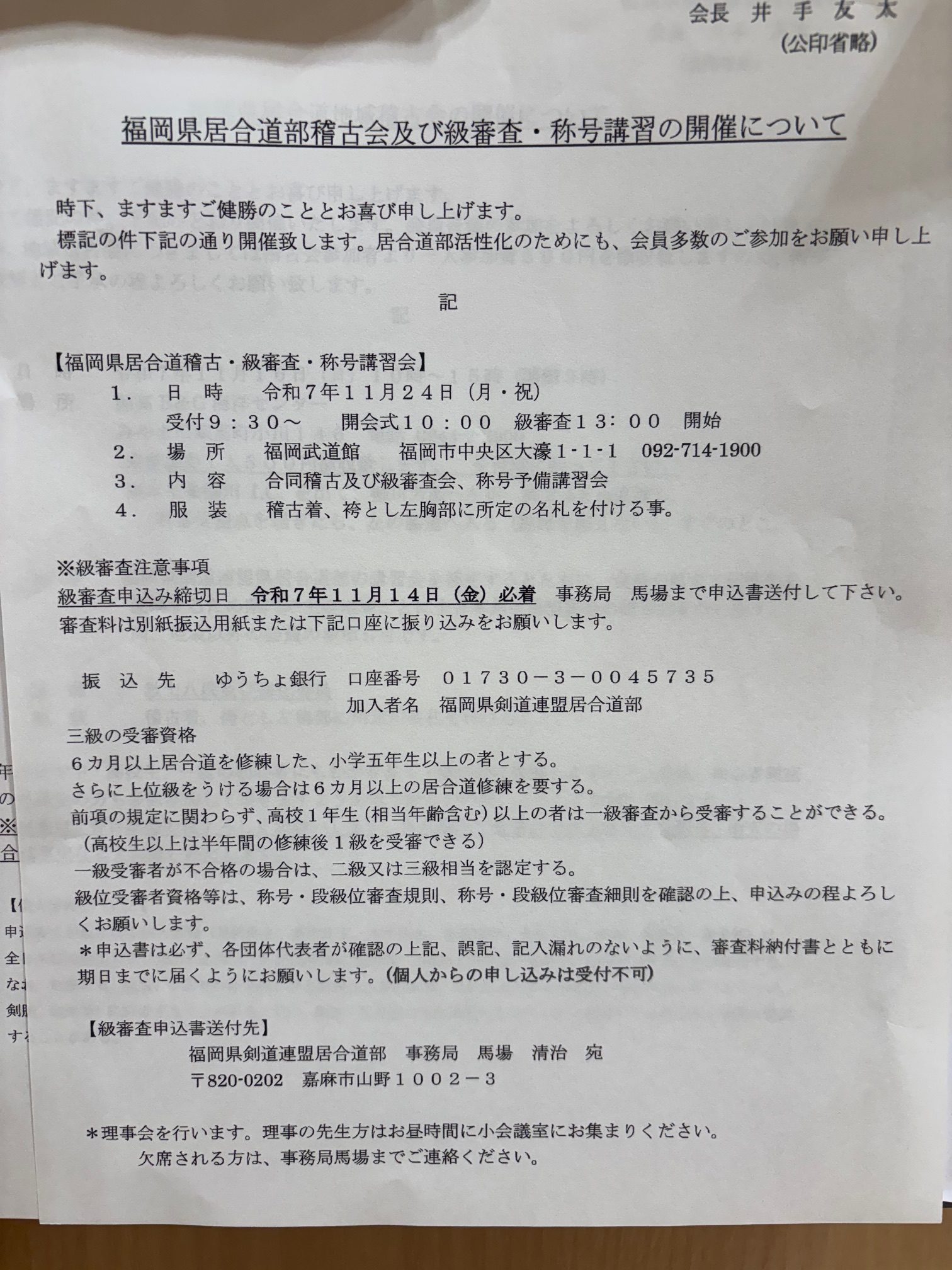 | 12月の稽古は以下の場所で行います | 福岡武道館の利用は11月までとなりましたので | 1.997015 | 8 |