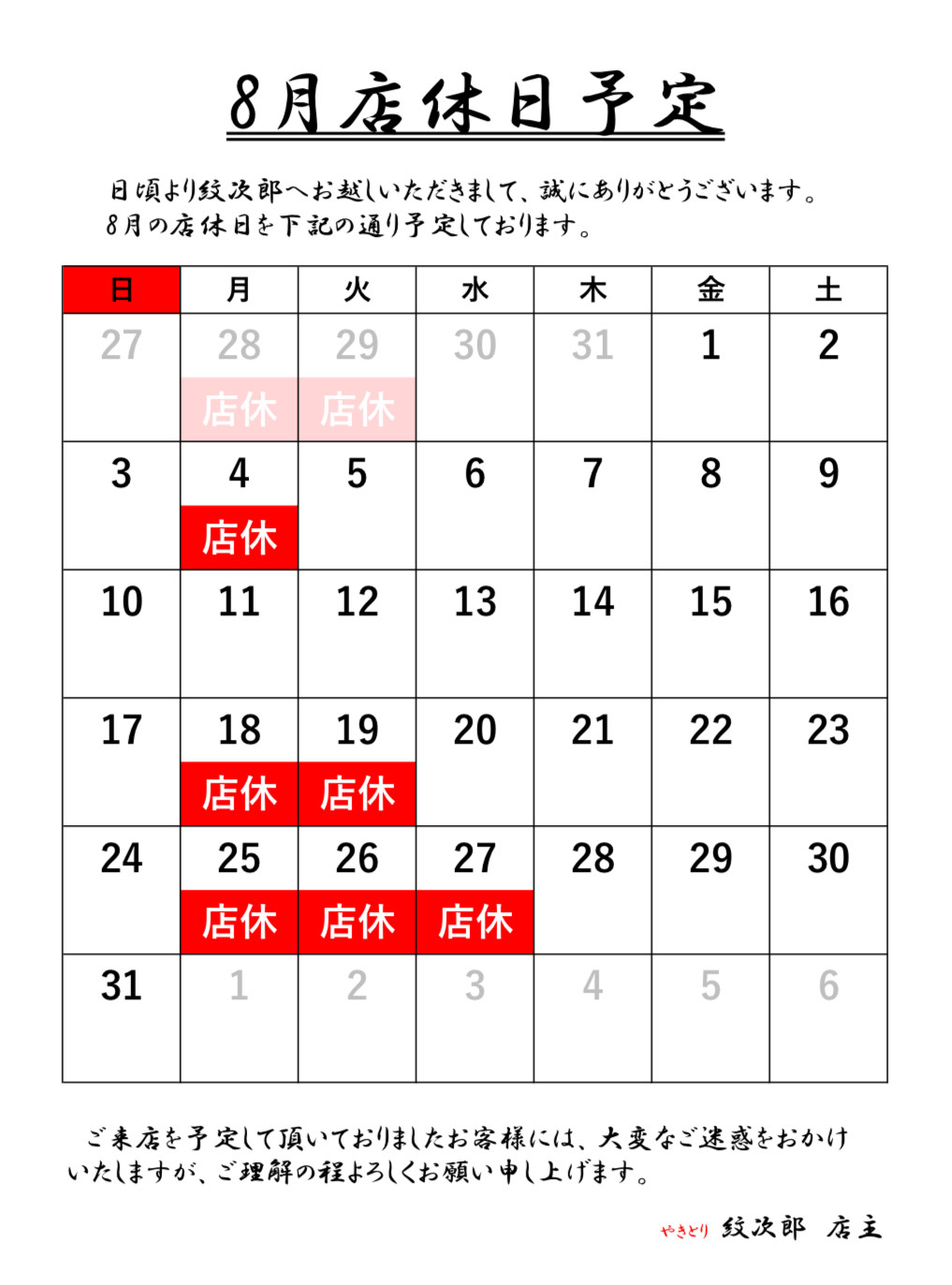 | https://yakitori-monjiro.com/wp-content/uploads/2025/07/2025年8月度店休日JPEG.jpeg | 3 |