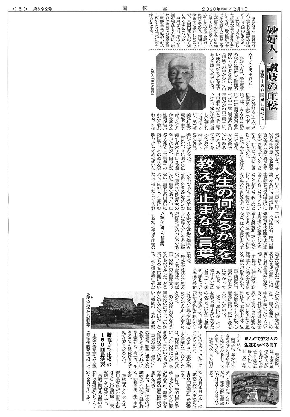 | 庄松同行150回忌法要 | 讃岐の妙好人 | 2.256671 | 11 |